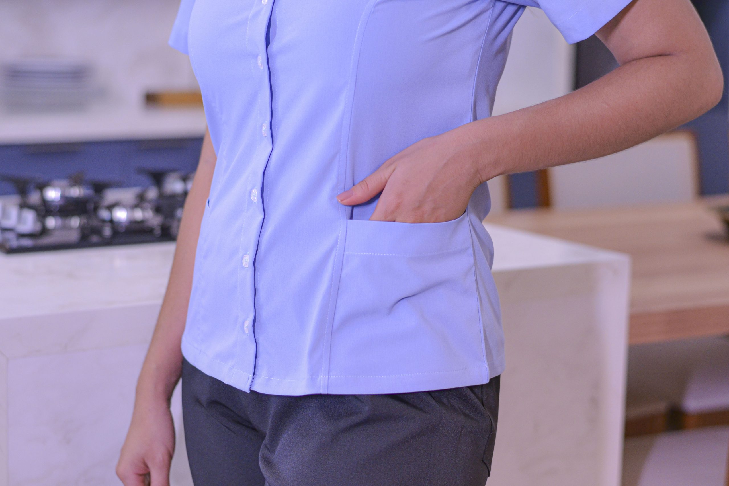 Camisa Feminina, recomendado para colaboradores do setor de serviços gerais. Confeccionado em tecido tricoline lisa, proporcionando conforto e flexibilidade para o dia a dia de sua equipe.